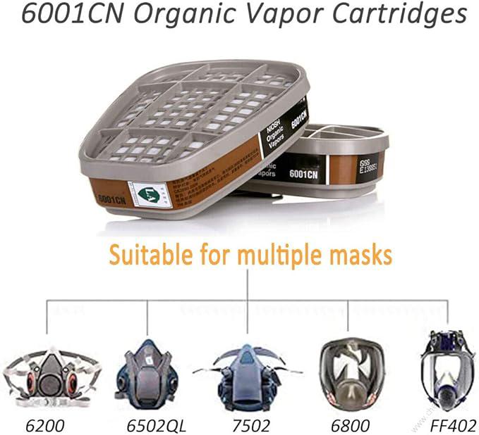 - The 6001 organic vapor cartridge is compatible with the following respirators: 6100, 6200, 7502, and others.