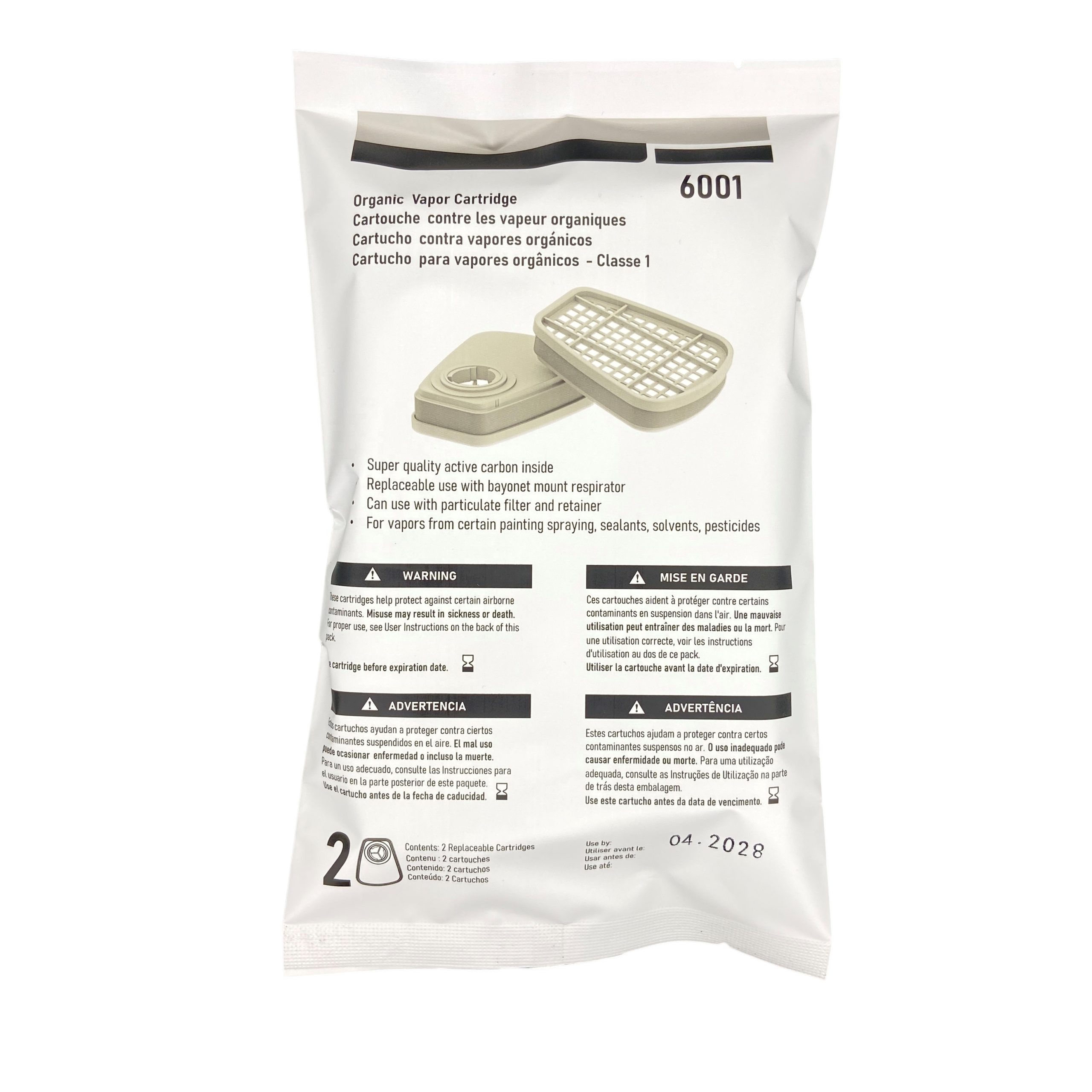 - The 6001 filter cartridge features an activated carbon core capable of filtering harmful gases, ensuring safety for the user.