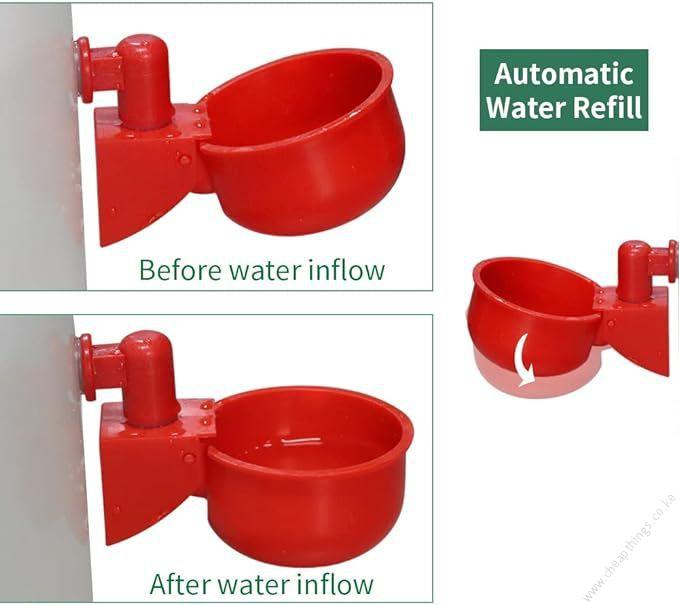 Gravity-Enabled Design: The chicken drinker cups are equipped with a gravity feed system, ensuring that they automatically refill with water as needed. This design prevents overflow and provides your poultry with a continuous supply of clean water.