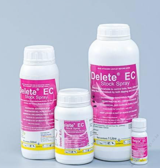 Delete EC is an acaricide and insecticide for the prevention and treatment of ectoparasitic infestation like ticks in livestock.