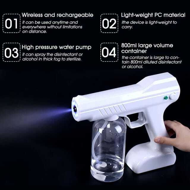 Hire cordless Nano Spray Gun for disinfecting a wide range of items and surfaces in homes, offices, factories, cinema halls, etc against viruses, bacteria, and fungi.
