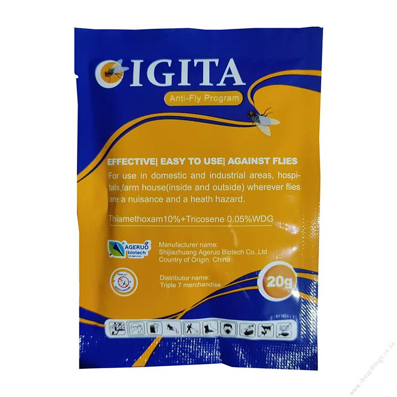 Igita Anti-Fly Program is a water dispersible residual insecticidal bait formulation for the control of house flies (Musca domestica) in agricultural buildings (e.g. barns, poultry houses, feed yards etc.).