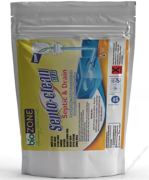 Septoclean-BFB is a new concept in bathroom cleaning which has microbial powder concentrate for septic tanks and drains. This formulation contains encapsulated endospore-forming bacilli and Enzymes that digest organic waste found in your plumbing systems.