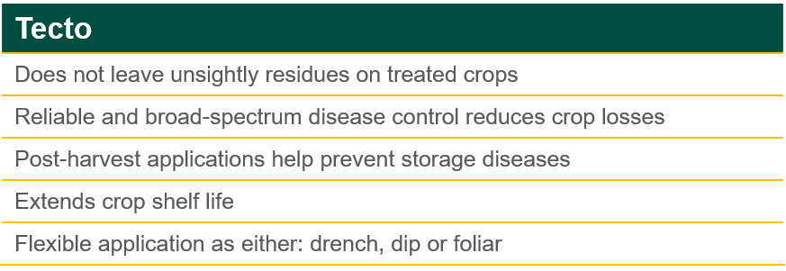 - Post-harvest applications help prevent storage diseases and extends crop shelf life